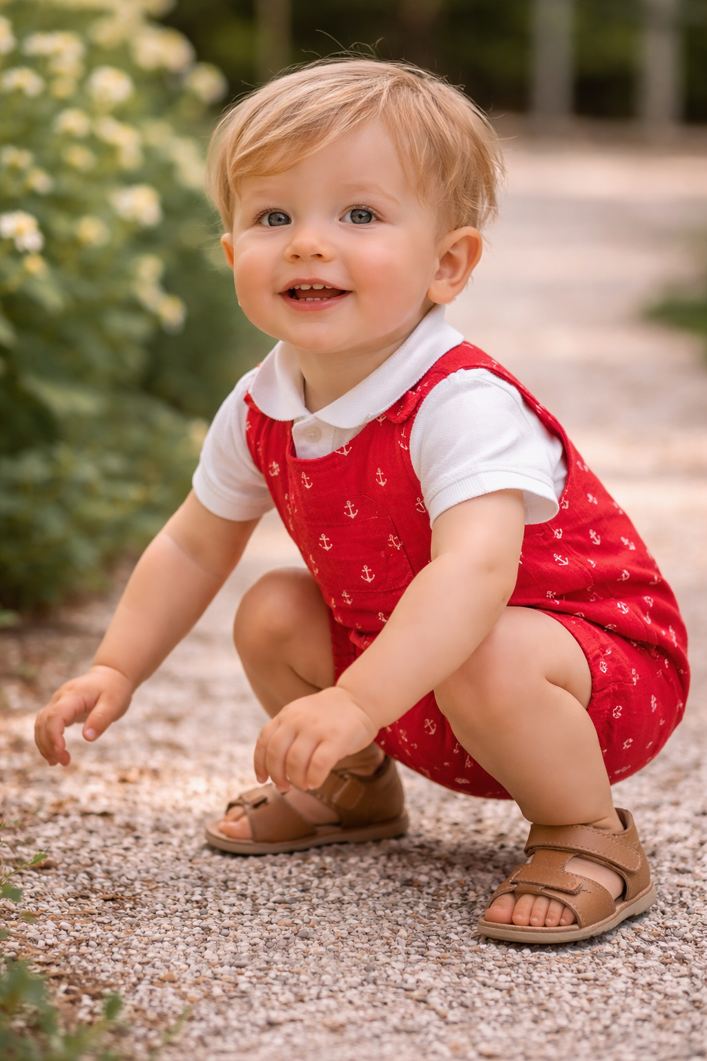 Le modèle Weston séduit par sa coupe intemporelle et son tissu délicatement imprimé d’ancres, pour une touche à la fois classique et joyeuse. Pensée pour le confort des tout-petits, elle offre une grande liberté de mouvement tout en restant élégante.