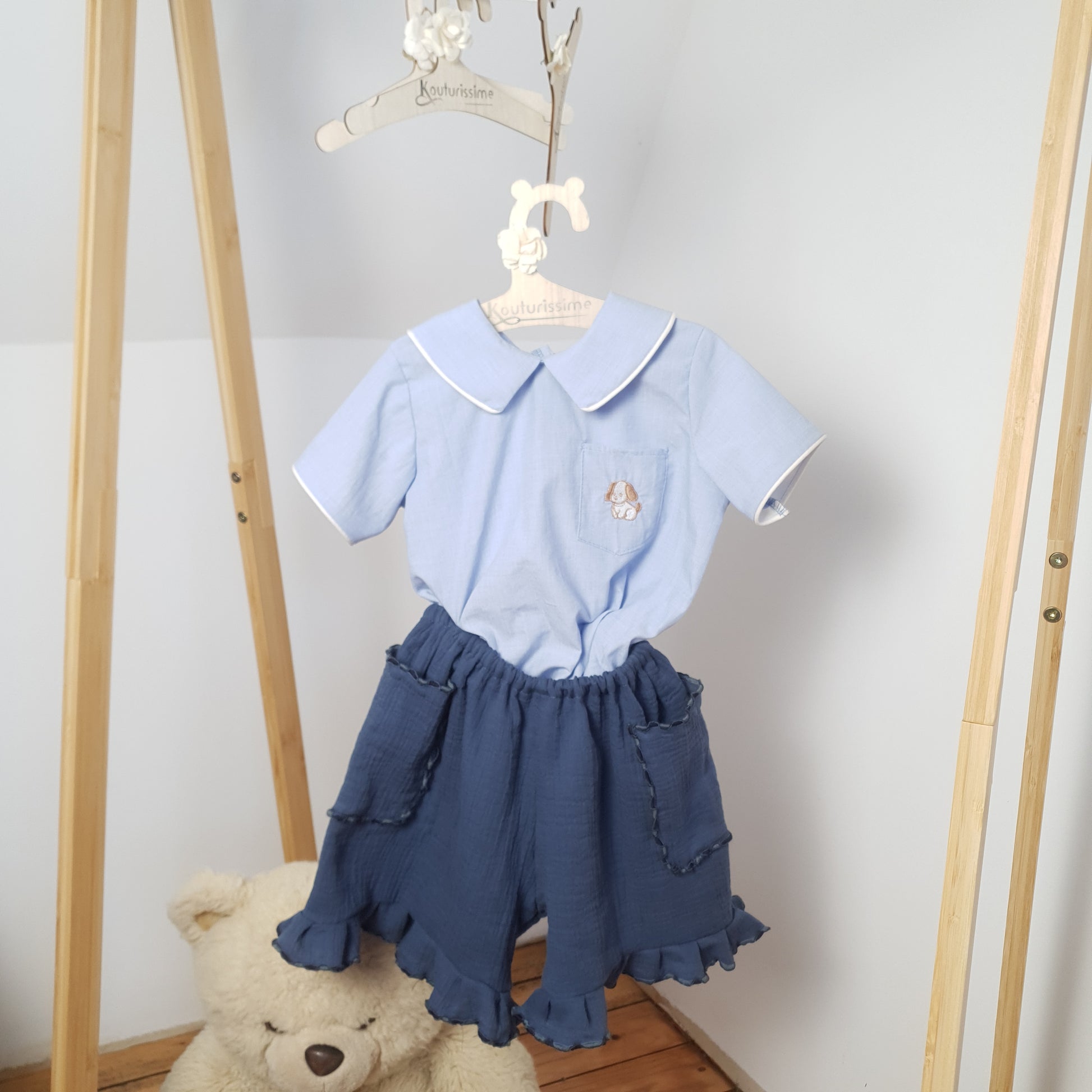 Possibilité de personnaliser la chemisette (broderie, choix de tissu selon disponibilités).