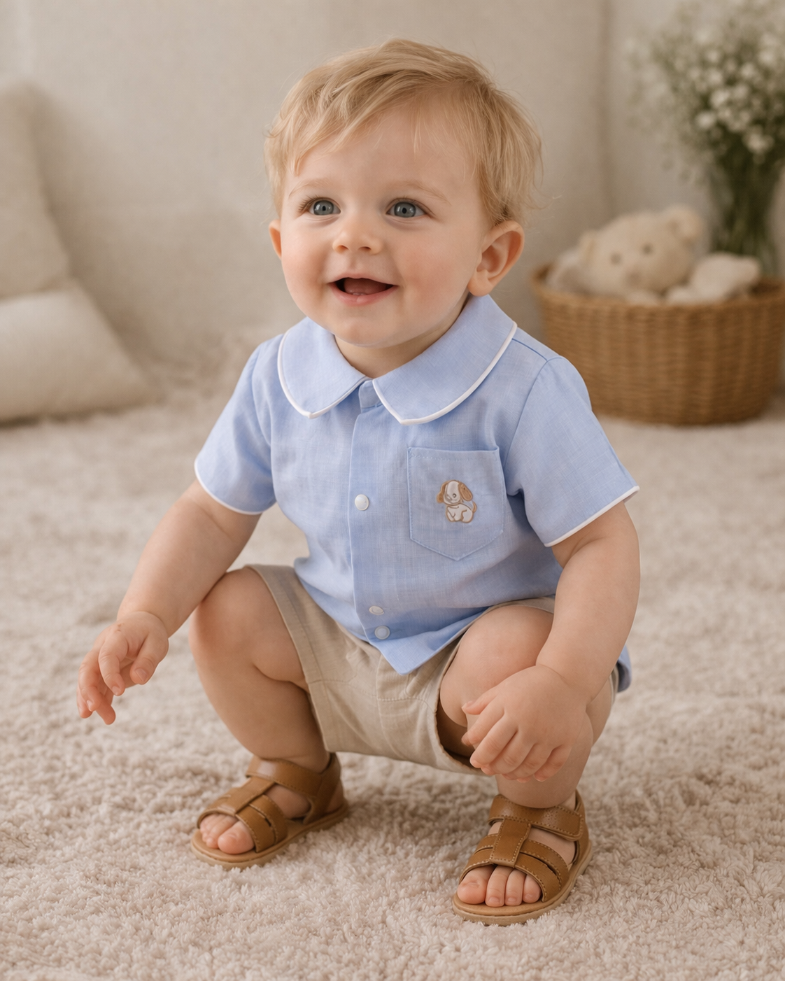 Une chemisette délicate et intemporelle, pensée pour habiller les tout-petits avec douceur et élégance.